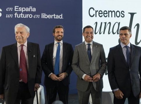 El escritor peruano ha felicitado a Pablo Casado --sentado en primera fila en el cónclave-- por la "maravillosa labor que ha llevado a cabo", ya que, según ha dicho, ha realizado una "labor admirable que ha defendido las libertades para España".