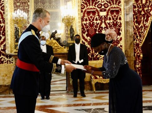 La primera en cumplir con el acto protocolario ha sido la nueva embajadora de Mozambique, Maria Manuela Dos Santos Lucas, la única mujer de los diplomáticos que han desfilado a lo largo de la mañana por el Palacio Real.