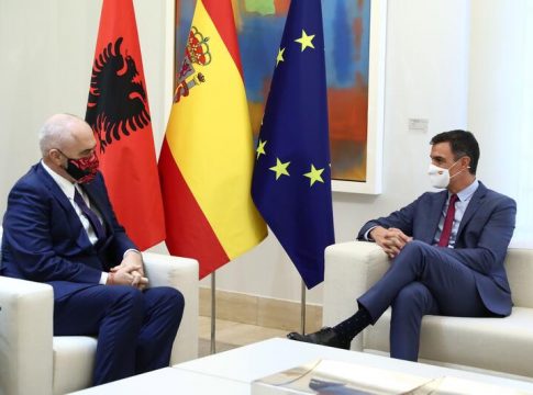 El presidente del Gobierno, Pedro Sánchez, ha reiterado este lunes al primer ministro de Albania, Edi Rama, el apoyo de España a la adhesión de este país a la Unión Europea y en general la ampliación del bloque a los países de los Balcanes Occidentales, en vísperas de la cumbre que se celebra el lunes con ellos en Eslovenia.