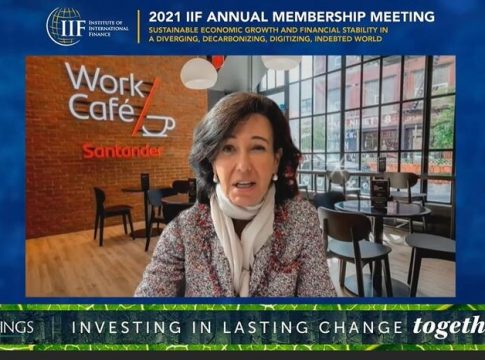 Durante la '2021 IIF Annual Membership Meeting', Botín ha reivindicado el papel de los bancos para ayudar a sus clientes en la transición sostenible, especialmente a las compañías más contaminantes, pero ha resaltado la necesidad de que los gobiernos proporcionen claridad sobre las políticas que van a implantar para conseguir sus objetivos de descarbonización.