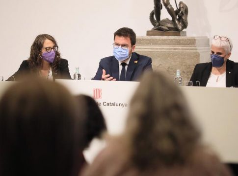 El presidente de la Generalitat, Pere Aragonès, y la consellera de Igualdad y Feminismos, Tània Verge, han presentado este miércoles el nuevo protocolo de actuación frente a los feminicidios, que quiere mejorar la coordinación institucional y también "identificar situaciones revictimizantes y de violencia institucional que puedan sufrir".