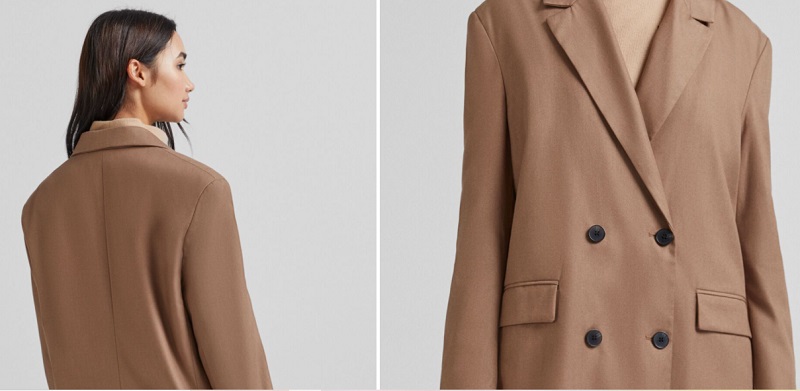 Otra propuesta de la firma es esta americana cruzada. Este modelo está disponible en dos versiones: esta marrón lisa y otra de cuadros grises. También es de corte masculino porque sus costuras son rectas. Y es que en esta temporada se llevan las prendas oversize. Cuenta con cuatro botones y dos bolsillos en su parte delantera. Puedes adquirirla en las tiendas de Bershka o en su página web por 35’99 euros.