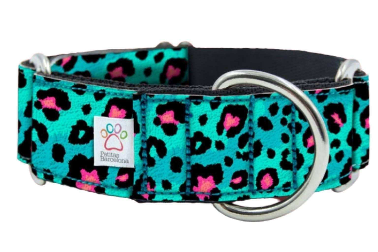 En este caso, el collar Martingale es un collar anti-escape y regulable. Se pasa por la cabeza y se ajusta a la medida del cuello mediante un pasador corredero. Su función es evitar que el collar se le salga por la cabeza cuando el perro pasea. Por ello, lo llevan muchos galgos y podencos, aunque su uso está cada vez más extendido a todas las razas.