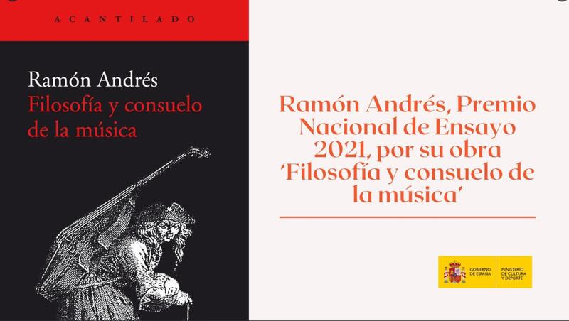 El jurado del Premio Nacional de Ensayo ha propuesto a Ramón Andrés para ser galardonado con el Premio Nacional de Literatura en su modalidad de Ensayo, correspondiente a 2021, por su obra 'Filosofía y consuelo de la música'.