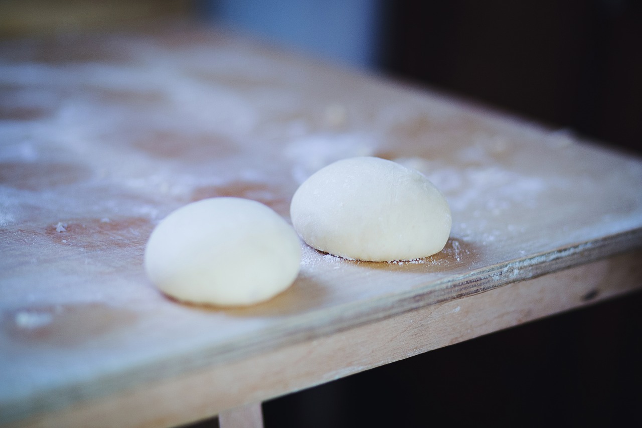 Cuando tengas lista la masa y puedas constatar que ha duplicado su tamaño, será el momento de cortar porciones de unos 60 gramos cada una y hacer bolas.