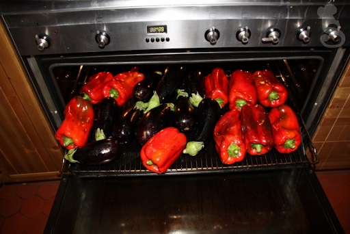 El tiempo exacto que necesitan los pimientos depende de su tamaño, de cómo funcione tu horno y del punto de asado que quieras conseguir. Si te gustan un poco confitados y con la piel un poquito chamuscada, sube la bandeja a la parte superior del horno y prográmalo 10 minutos con la función grill a 200ºC. A mitad de cocción les das la vuelta y compruebas cómo va el punto de asado. No descuides los pimientos, sobre todo en esta parte final, porque de un momento a otro pueden pasarse.