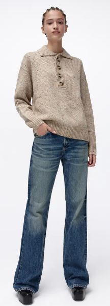 Quizás te has enfrentado al terrible problema de que vas al trabajo pero no hayas que ponerte para sentirse cómoda para una larga jornada laboral. Te contamos que en Zara están vendiendo piezas que son ideales para que acudas a tu oficina durante la semana. Claro, también sirven para tu salidas esporádicas. Este modelo punto cuello polo es novedad en esta tienda y podrás encontrarla en color beige. Tan sólo hay tallas S y M. Es un tejido de lana, posee un cuello solapa y es manga larga. Vale añadir que, cuenta con un cierre en su lado frontal al que le han puesto botones. Su costo es de 29.95 euros.