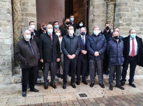 El presidente de CEOE, Antonio Garamendi, acompañado por los presidentes de CEOE Castilla y León, Santiago Aparicio, y de CEOE Empresas de Palencia, José Ignacio Carrasco, ha visitado las iglesias de Santa María y Santiago en el municipio carrionense, una de las sedes de las Edades del Hombres y después se ha reunido con empresarios palentinos en el marco del proyecto 'El Camino de las Empresas 2021'.