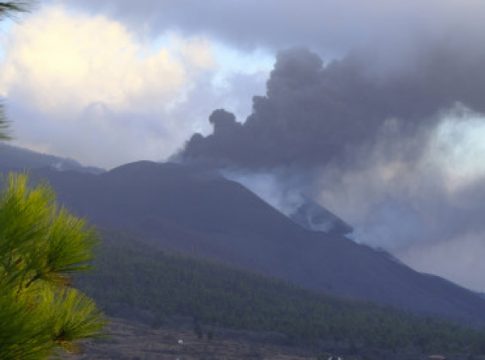 La altura de la nube de dispersión de ceniza alcanza hoy los 2.500 metros y se dirige hacia el suroeste. En relación a las previsiones meteorológicas, en superficie continuará soplando el viento del noreste con fuertes rachas que pueden alcanzar los 60-70 km/h, principalmente en zonas de cumbre y medianías.
