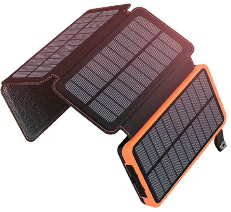 El primer cargador solar que te proponemos tiene una potencia de 25.000 mAH, lo que va a permitir que cargues completamente tu teléfono hasta seis veces. Tiene cuatro paneles solares que absorben los rayos. También posee dos puertos USB para que puedas enchufar dos dispositivos a la vez. Cuando alcanza el 100% de carga, finaliza el suministro de manera automática. Puedes comprarlo en Amazon por 49'99 euros.