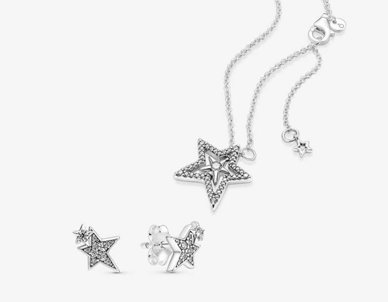 Dale a tu look un aire celestial con este conjunto de regalo Estrellas Asimétricas Brillantes. Lo conforman los pendientes de botón Estrellas Asimétricas Brillantes y el collar Estrella Asimétrica en Pavé. Las dos joyas están acabadas a mano en plata de primera ley y decoradas con brillantes circonitas cúbicas formando estrellas asimétricas. Pandora lo ha puesto a la venta por 99 euros. En cambio, si las adquieres por separado te van a costar 118 euros. ¡Qué gran oportunidad!