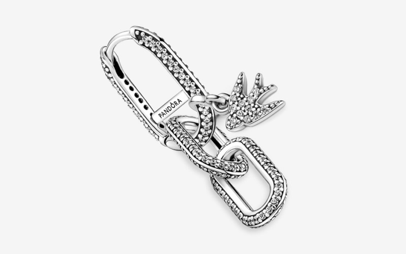 Mucho más atrevido es este conjunto de la marca española, ya que está formado por un pendiente al que se le añaden dos eslabones de cadena y un colgante con forma de pájaro. Todas estas joyas están acabadas en plata de primera ley y cuenta con cristales como adorno. Puedes comprarlo en las tiendas de Pandora o en su página web por 83 euros.