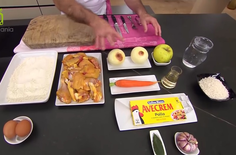 Para hacer esta receta, necesitarás un pollo troceado. Arguiñano recomiendo uno de corral porque su carne será más jugosa. También tendrás que tener a mano dos cebollas, una zanahoria, harina, dos huevos, una pastilla de caldo, un vaso de vino blanco, una manzana, unos dientes de ajo y laurel. Para acompañar al pollo guisado, puedes realizar un arroz blanco.