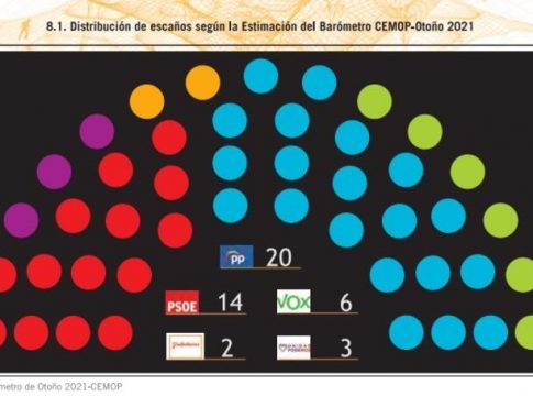 En concreto, los resultados reflejan que el PP conseguiría un 39,5% de los votos y obtendría 20 escaños. Los 'populares obtendrían cuatro diputados más que en las pasadas elecciones. Por su parte, el PSOE sería la segunda fuerza más votada, con un 29,5% de los votos y 14 escaños, tres menos que en la actualidad y los mismos que en el anterior barómetro.