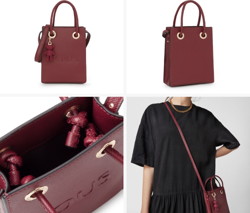 Si prefieres los bolsos pequeños, la marca catalana te propone uno mini de poliuretano con acabado saffiano en color burdeos. Cuenta con un cierre con botón magnético y un asa de bandolera desmontable y ajustable. Posee un bolsillo interior plano y un detalle de oso colgante. Puedes comprarlo en las tiendas de Tous o en su página web por 69 euros.