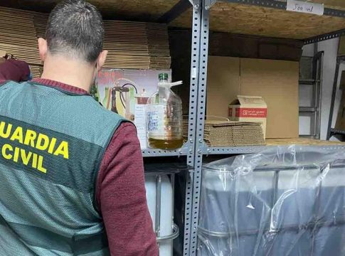 La Guardia Civil ha detenido a tres personas y se ha incautado de aproximadamente 4.000 litros de aceite por presuntamente adulterar y mezclar aceite para hacerlo pasar para su venta por aceite de oliva virgen extra procedente de olivos de Mallorca.