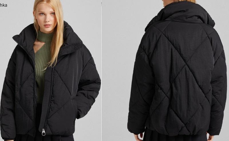 Muy similar a la propuesta anterior es esta cazadora negra. En este caso, sí que está fabricada de nylon. Sus costuras forman rombos a lo largo de toda la prenda. Cuenta con cierre de cremallera y cuello alto. Además de en negro, está a la venta en color crudo. Puedes comprarlo en las tiendas de Bershka o en su web por 35'99 euros.