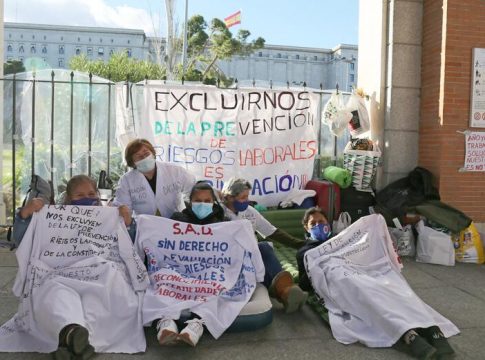 Trabajadoras de ayuda a domicilio, que llevan 20 días acampadas ante el Ministerio de Trabajo para protestar por su exclusión de la Ley de Prevención de Riesgos Laborales y por no tener reconocidas las enfermedades profesionales que les afectan, han convocado este domingo una manifestación en Madrid para hacer oír sus reivindicaciones.