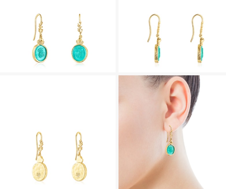 Si te ha gustado la propuesta anterior, puedes conseguir unos pendientes a juego. Las piezas están fabricadas en plata vermeil. El camafeo es de un oso con textura coral de glass verde, una rama en forma de coral y una concha. El cierre de las joyas es mediante un gancho. En vez de costarte 135 euros, podrás comprarlos en el Black Friday por 108 euros.