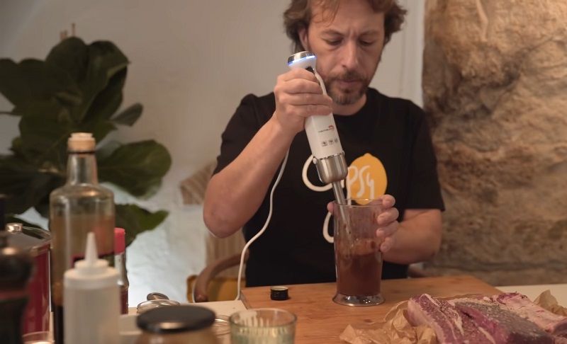 Con la ayuda de la batidora, empieza a triturar todos los ingredientes hasta que obtengas una textura homogénea. Prueba la salsa para corregir su sabor: si está muy dulce échale un poco más de aceite de soja, y si está muy salada un poco de miel. La salsa Barbacoa tiene que ser agridulce, por lo que ningún sabor debe predominar por encima del otro.