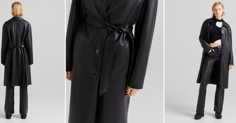 El efecto piel es una de las tendencias de esta temporada. Este tejido impregna todo tipo de prendas, por lo que no podía faltar en los abrigos. Para muestra, esta gabardina trench, es decir, impermeable. Además, cuenta con la típica lazada para que te la ajustes a la cintura. Va a combinar con todas tus prendas. Puedes adquirirla en las tiendas de Bershka o en su web por 39'99 euros.