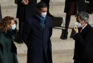 Casado y Ayuso han estado charlando de forma breve tanto al comienzo como al término de ese acto, unas conversaciones a las que se han sumado en diferentes momentos otros presidentes autonómicos, como el gallego Alberto Núñez-Feijóo, el murciano Fernando López Miras, o el castellanoleonés Alfonso Fernández-Mañueco. El líder del PP también ha charlado con el presidente del Tribunal Supremo, Carlos Lemes, antes de abandonar la explanada de la Puerta de los Leones.
