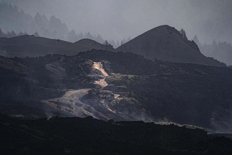 Las coladas volcánicas continúan activas al oeste del cono principal de Cumbre Vieja y discurren principalmente por tubos volcánicos y varios jameos, y una de ellas, la que surgió al norte de Montaña Cogote, ya ha llegado al cantil y a la isla baja.