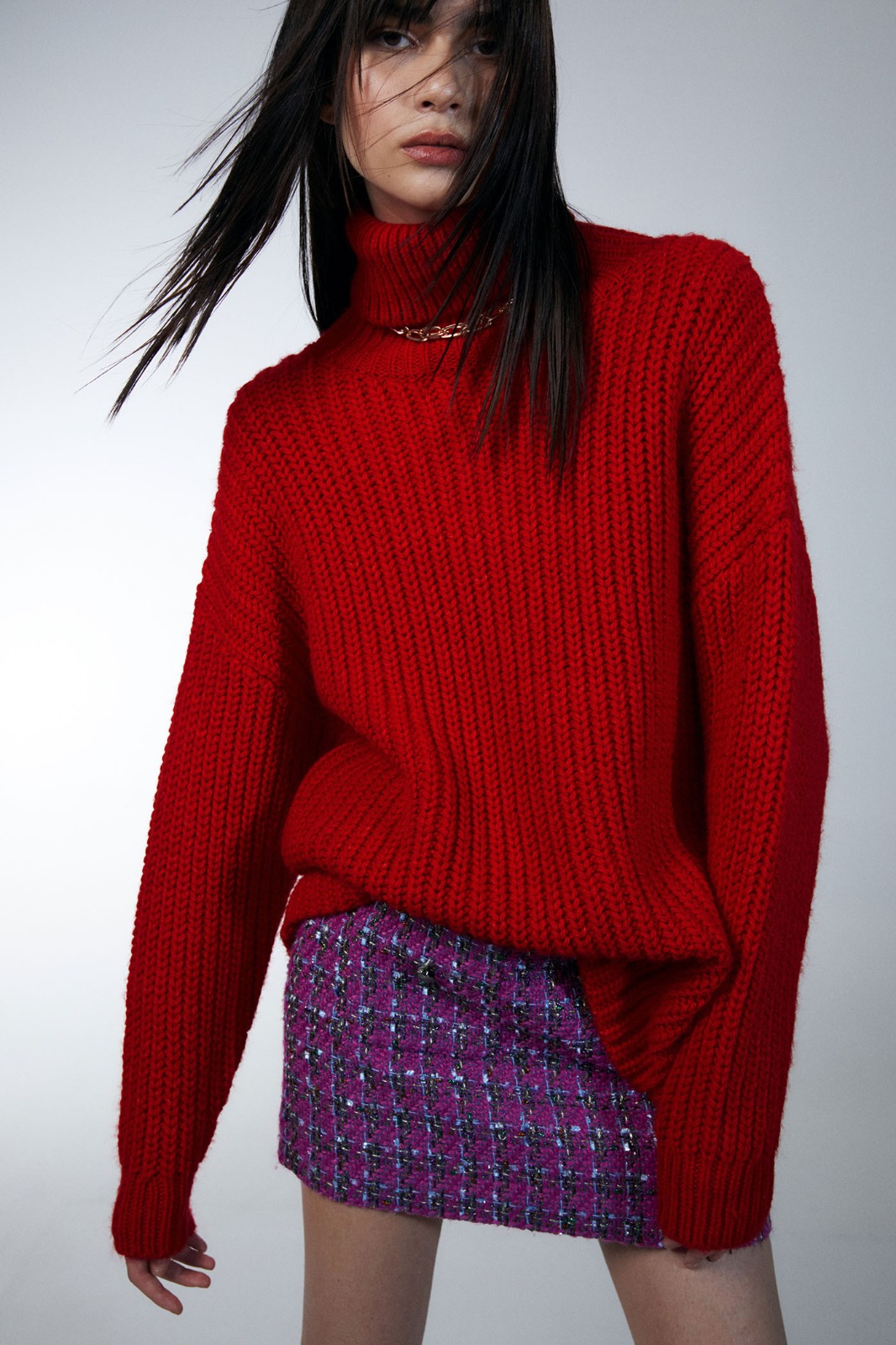 Está realizado con un 81% de acrílico, un 14% de poliamida y un 5% de poliéster por lo que es una pieza con flexibilidad y suave al tacto. Puedes escoger entre una talla S y una talla M. Se trata de un jersey de un llamativo tono rojo con acanaladuras. Al ser oversize te deja total libertad de movimientos y puedes combinarlo con una amplia variedad de looks informales y urbanos.