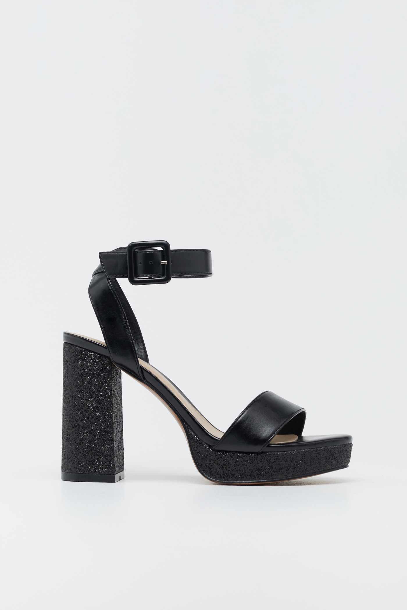 Del mismo modo, y para salir por las noches en estas fechas tan señaladas, Sfera te ofrece estas sandalias con plataforma. Cuenta con un tacón de purpurina con el que serás el centro de todas las miradas y tus pasos, literalmente, brillarán allá por donde camines.