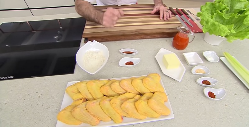 Para realizar las alitas de pollo adobadas con su salsa casera, necesitarás unas 4 alitas por persona. Por lo que calcula cuántos sois en casa o cuántas personas van a comerlas. También vamos a utilizar 100 gramos de mantequilla, 200 mililitros de una salsa picante de tu elección, 2 cucharadas de guindilla picante, 2 cucharadas de pimentón, 1 cucharada de ajo molido, 1 cucharada de harina de maíz, una cucharadita de azúcar y 100 gramos de harina.