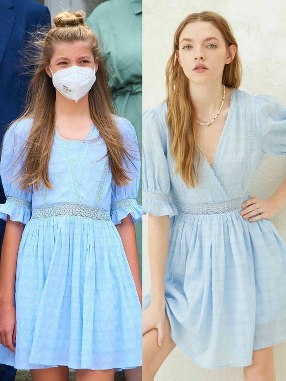 El vestido que le modificaron a la infanta Sofía, y que quizás muchos no se percataron, era de manga corta y contaba con volumen. Además, le pusieron detalles de lace y tenía su respectiva falda con vuelo. Un artículo que fue creado en un bellísimo color azul que la hacía ver juvenil. Pero, la pieza de la marca High Spirits, que vende Springfield, tenía un escote "V" que fue cambiado. La idea era que Sofía no mostrara nada. Por lo tanto, le cocieron la abertura con una tela juego, que ahora se repite con algo similar en la Reina Letizia. En definitiva, le ha quedado bien y no se nota esa corrección.
