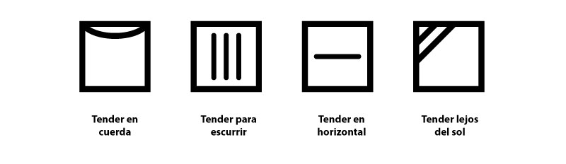 - Un cuadro con líneas diagonales en la esquina: secar la ropa al aire y en la sombra.