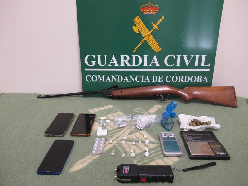 La Guardia Civil ha detenido en Montilla (Córdoba) a dos vecinos de la localidad como supuestos autores de un delito de tráfico de drogas y dos delitos de defraudación de fluido eléctrico, una operación en la que se han desmantelado dos puntos de venta de heroína y cocaína, y un cultivo de marihuana ('Cannabis sativa').