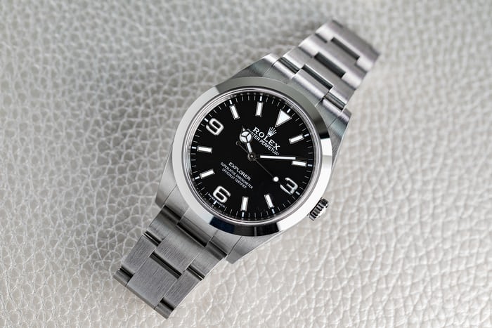 Este Rolex Explorer I, en particular, introdujo uno de los mayores cambios en la historia, una caja más grande de 39 mm para sustituir a la tradicional de 36 mm. La esfera también se renovó, los icónicos números 3, 6 y 9 dejaron de ser luminiscentes y se elaboraron completamente en oro blanco de 18 quilates y el texto EXPLORER se trasladó de debajo del logotipo de Rolex a encima de las 6 horas. Este cambio creó un modelo más robusto, pero aún identificable con la marca.