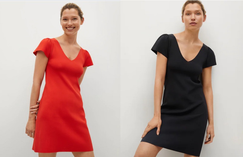 Cambiando de estilo, nos encontramos con estos magníficos vestidos de punto. Puedes comprarlo en rojo o en negro. Están realizados con un tejido de punto fino y presentan un diseño entallado. Son de manga corta y cuentan con un escote en forma de pico. Se cierran mediante un lazo en su parte posterior. Cada pieza costaba 29'99 euros, pero Mango los ha rebajado hasta los 22'99 euros.