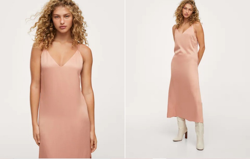 Los vestidos lenceros son una opción que no pasa de moda, por lo que estás ante una gran oportunidad para hacerte con uno por muy poco dinero. En este caso, se trata de un modelito con tejido satinado y diseño largo. Presenta un escote en forma de pico y tirantes finos. Además, cuenta con varias aberturas en el bajo. Mango lo vendía por 29'99 euros, pero ahora lo puedes adquirir por tan solo 22'99 euros.