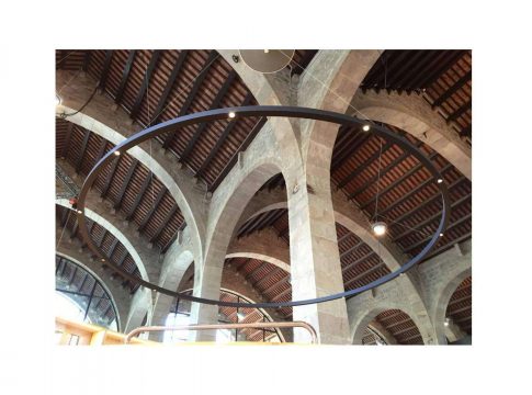 Insolit, la empresa española que diseña y fabrica luminarias adaptadas a cualquier tipo de necesidad, ha fabricado una luminaria circular gigante a medida para este patrimonio barcelonés (model TR Spot Huge), que se constituye como uno de sus trabajos más significativos.