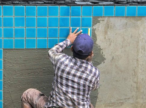 La siguiente etapa es la de hormigonado del vaso y la colocación de los revestimientos con el acabado que el cliente elija para las paredes y el suelo del vaso de la piscina. Este se basa en un alicatado de baldosines de gresite de vidrio agrupados en placas que se fijan con mortero de cemento, el vaso recibirá un remate de coronación con piezas de piedra lisa con tratamiento antideslizante.
