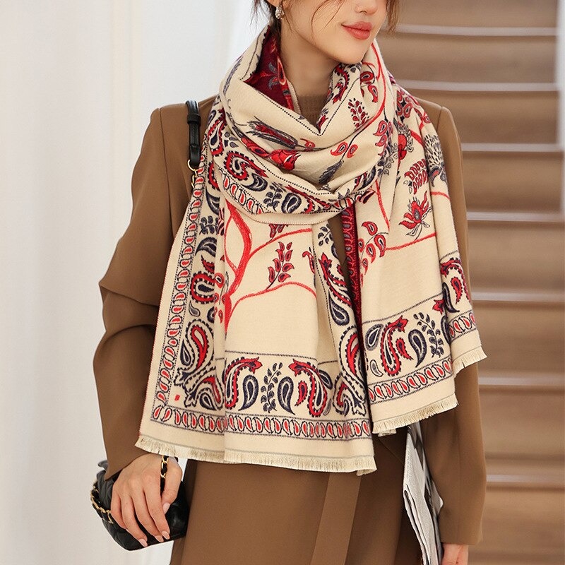 Está realizado con cashmere y con un material acrílico. Tiene le objetivo de cubrir gran parte de tu torso en caso de que el tiempo esté frío y mantiene muy bien la temperatura corporal. Es un pañuelo ideal para vestir con ropa casual. Cómpralo aquí.