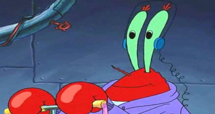 Aquí podemos observar como un cangrejo está escuchando música a través de sus ojos ya que no tiene oídos. La escena, en principio, ya es muy surrealista (¿Has visto alguna vez a un cangrejo escuchando música?), pero el hecho de tener los auriculares colgados en los ojos lo es aún más.