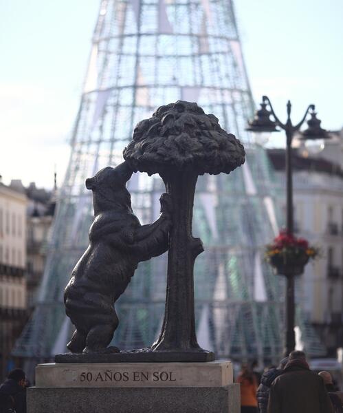 El Oso y el Madroño, el monumento más icónico de Madrid, cumple 55 años en la Puerta del Sol entre debates sobre si es, en realidad, una osa.