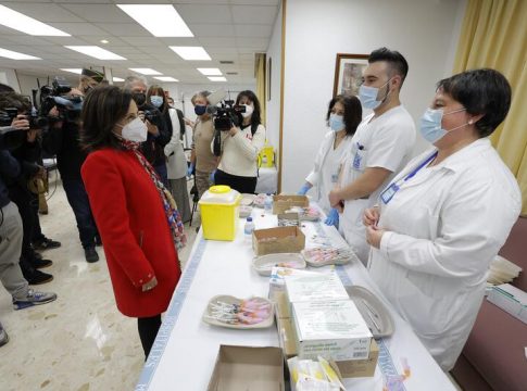 Robles ha visitado este lunes, 10 de enero, la Unidad de Vacunación del Hospital General de la Defensa de Zaragoza, que fue la primera que se puso en funcionamiento, una vez que el Gobierno de España acordara que la sanidad militar reforzara las campañas de vacunación contra la COVID-19. Le ha acompañado la subsecretaria de Defensa, María Amparo Valcarce; el coronel y director del Hospital, Juan Antonio Lara, y la consejera de Sanidad del Gobierno de Aragón, Sira Repollés.