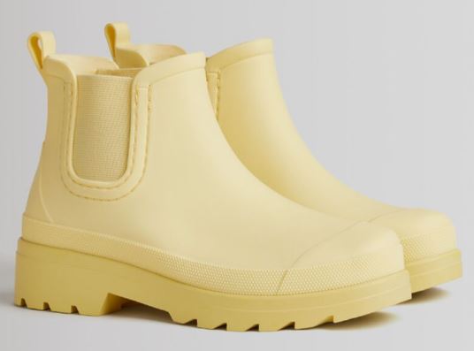 Si no cuentas con botas o botines para andar cuando hay lluvia, este de Bershka te conviene. Es uno de los más pintorescos de la marca y viene con un 13% de descuento. Se trata de unos botines de agua con elásticos. Son perfectos para esos momentos donde el tiempo no ofrece su mejor cara, pero ya irás protegida. Ya se acabó la talla 41, pero de resto sí hay disponibilidad, a un precio de 25.99 euros. Es de color amarillo con elásticos en los laterales, suela con track y tacón de 4 cm.
