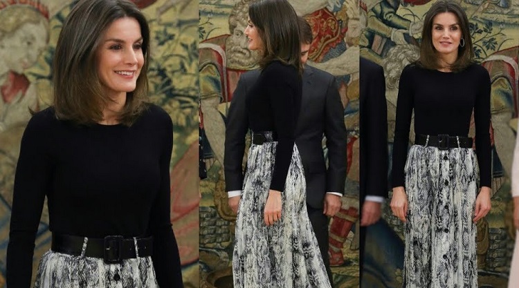 La Reina se ha dejado ver con una de las prendas de moda. Más que nada porque entre el estampado y su caída lo tenía todo para triunfar. Se ha decantado por Zara para presidir algunas recepciones en la Zarzuela. Además, con un look invernal pero siempre, con mucho estilo. Para ello, eligió unas botas altas en color negro y de fino tacón. La falda, que es protagonista, cuenta con un largo midi, una serie de botones en la parte delantera y una caída muy sencilla.