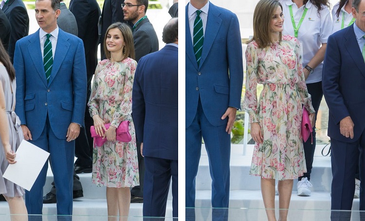 Pues seguimos hablando de vestidos y en este caso, un poco más corto que el anterior, pero de la misma firma. El estampado floral parece ser uno de los favoritos de la Reina Letizia, ya que se le ha visto con él en numerosas ocasiones. Aunque también es cierto que opta por muchos otros. Un vestido delicado y con corte romántico, donde el color rosa es protagonista.