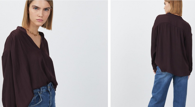 Otra propuesta de esta marca es esta blusa negra fluida. Esta prenda es de estilo camisero, pero te va a quedar muy suelta, pudiendo dar lugar a arrugas desagradables. Las mangas también son muy anchas, por lo que debes andar con cuidado para no engancharte en los sitios. Sfera vendía esta blusa por 15'99 euros, pero ahora la podrías adquirir por solo 9'99.