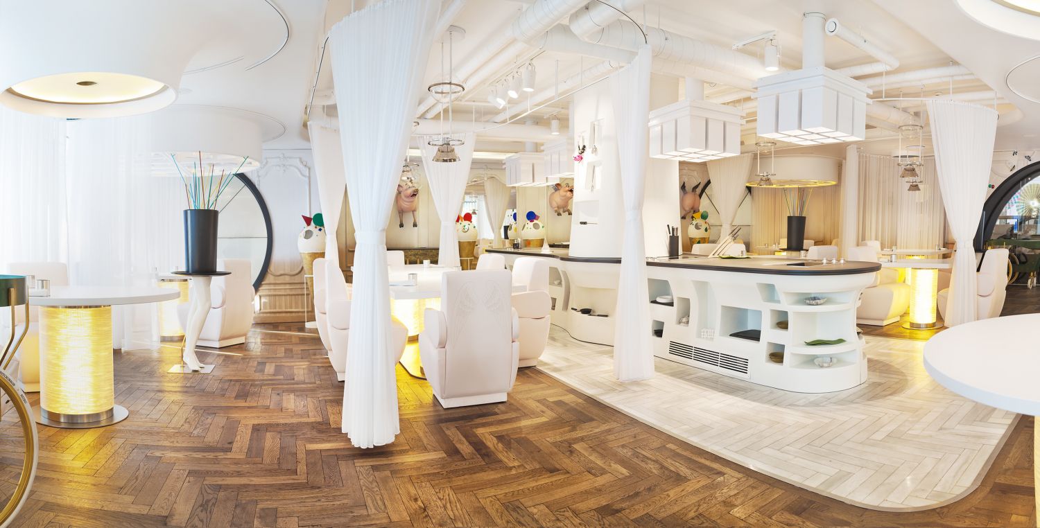 La experiencia gastronómica se ha descrito como un teatro en lugar de simplemente una comida sentada debido a la cocina experimental y el interior. Elige entre favoritos como langosta con huevos de perdiz o piel de cerdo sobre brioche de sésamo negro.