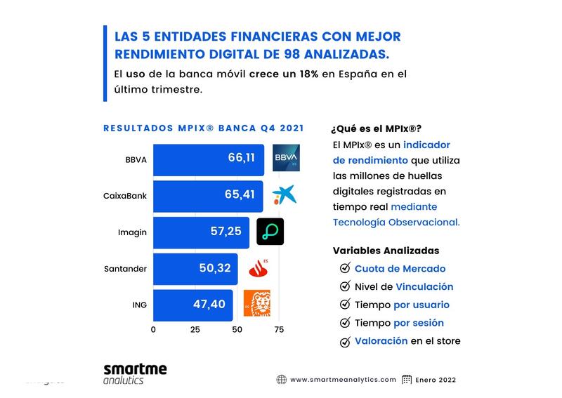 El uso de las aplicaciones de banca móvil se incrementó un 17,8% en el último trimestre de 2021, en comparación con el trimestre anterior, y un 19,5% respecto al mismo periodo de un año antes, según reflejan los datos recogidos por Smartme Analytics.