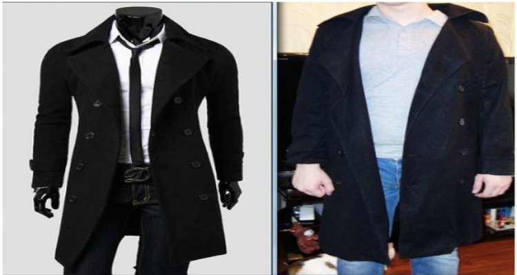 El abrigo que pidió este caballero resultó ser un auténtico fracaso, y no solo porque era un poco pequeño para él (el dilema de las tallas chinas), sino porque el diseño no estaba demasiado bien. Era más largo que un lado que de otro. ¡Vaya fiasco de compra!