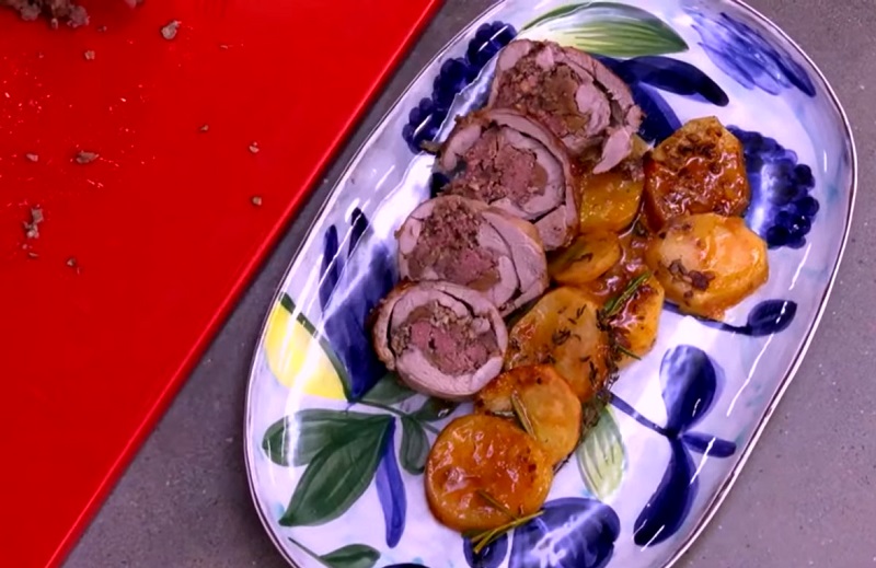 Lo único que te queda por hacer es cortar el cordero relleno de champiñones y castañas en rodajas para repartirlo en raciones. Sírvelo acompañado de las patatas asadas como guarnición. Este plato va a encantar a tus invitados y te van a pedir que lo hagas más a menudo. En poco más de una hora lo tendrás listo, por lo que tendrás que calcular para ponerlo recién hecho. ¡Qué aproveche!